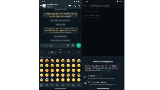 Neben dem neuen Keyboard-Feature gibt es neue Community-Einstellungen in der App. Damit können Admins von Communitys nun entscheiden, wer Gruppen zu der Community hinzufügen kann und wer nicht.