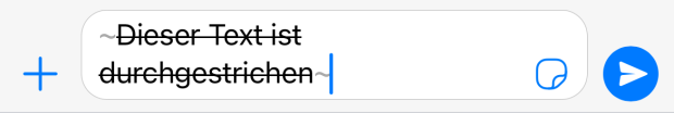 Texte lassen sich bei Whatsapp auch durchstreichen. Auch wenn es bei Textnachrichten eher unnötig wirkt, Texte nachträglich zu radieren, kann diese Formatierung gut als Stilmittel verwendet werden. So können beispielsweise Angebote, wie „Das Pro-Paket gibt es nun statt für 19,99€ für 14,99€“, hervorgehoben werden. Bei Whatsapp kann ein Abschnitt durchgestrichen werden, indem du den Text mit einem Wellen-Geviertstrich (⁓) ummantelst.