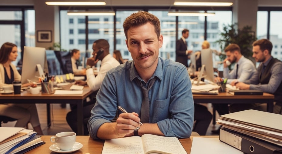 KI-generiertes Visual, das einen zwinkernden Journalisten im Büro darstellen soll. Bild: Google Whisk