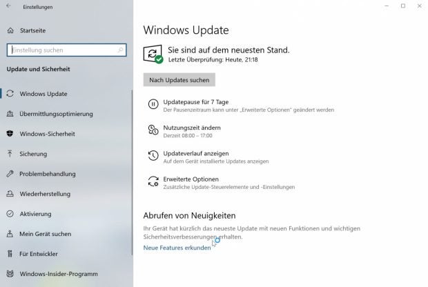 Dazu geht ihr über Windows > Einstellungen > Update und Sicherheit auf „Windows Update“. Hier solltet ihr diesen Screen sehen: