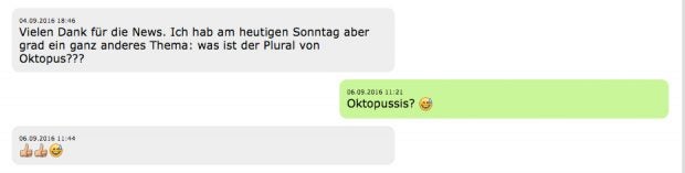 Es sind gut drei bis vier dieser Chats, die wir täglich führen und aufklären. Verglichen mit den tausenden Abonnenten, die unsere t3n-Artikel über diesen Weg erhalten, ist das natürlich wenig – dennoch zaubern sie uns jedes Mal wieder ein Lächeln auf die Lippen. Hier eine kleine Auswahl im Rahmen des zweiten Teils. Viel Spaß damit!