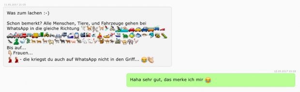 Witzig, versaut und manchmal auch ganz schön frech: Vor fast einem Jahr haben wir einen Artikel über Whatsapp-Nachrichten von Lesern veröffentlicht, die unseren Messenger-Service abonniert haben. Den Beitrag habt ihr geliebt und insofern möchten wir – fast ein Jahr später – einen zweiten Einblick in den Maschinenraum gewähren. Auch diesmal erreichten uns konkrete Fragen und häufig versehentlich verschickte Irrläufer, die wir selbstverständlich beantworten.
