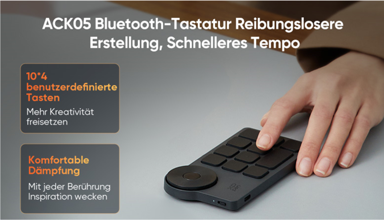 Für einen optimierten Workflow gibt es die Shortcut-Remote mit Drehregler, die sich per Bluetooth verbinden lässt. Diese erleichtert das Zoomen, Drehen oder Anpassen der Pinselgröße und kann auch für andere Anwendungen genutzt werden.