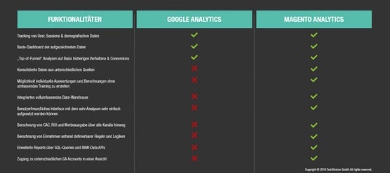 Gegenüberstellung von Google Analytics und Magento Analytics (BI)