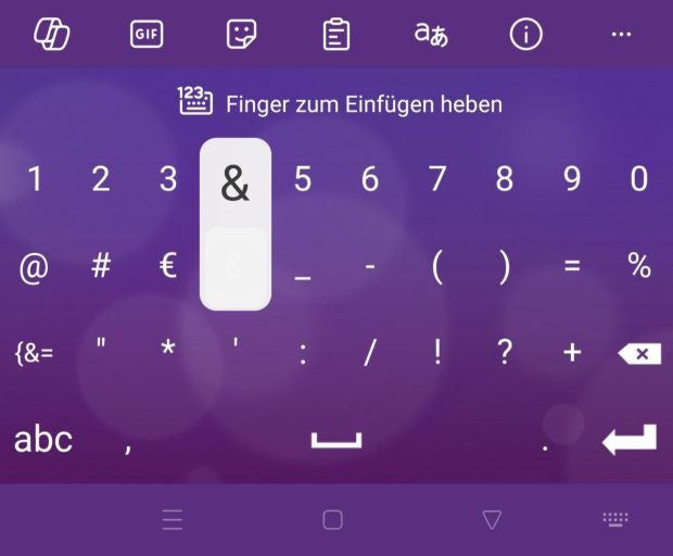 Auch hier gibt es einen Trick, wenn ihr den „123“-Button länger gedrückt haltet. Bewegt ihr dann euren Finger über das Display, erscheint das Sonderzeichenmenü. Lasst über der Zahl oder dem Sonderzeichen los, das ihr nutzen wollt, und schon landet es in eurer Nachricht. Zudem wechselt die Tastatur automatisch zurück in die normale Ansicht.